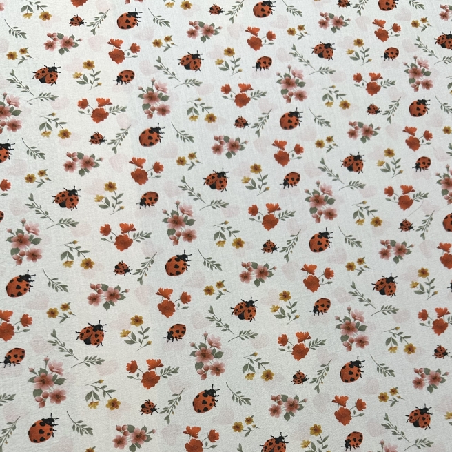 Stoff 937 - Marienkäferl auf weiß *