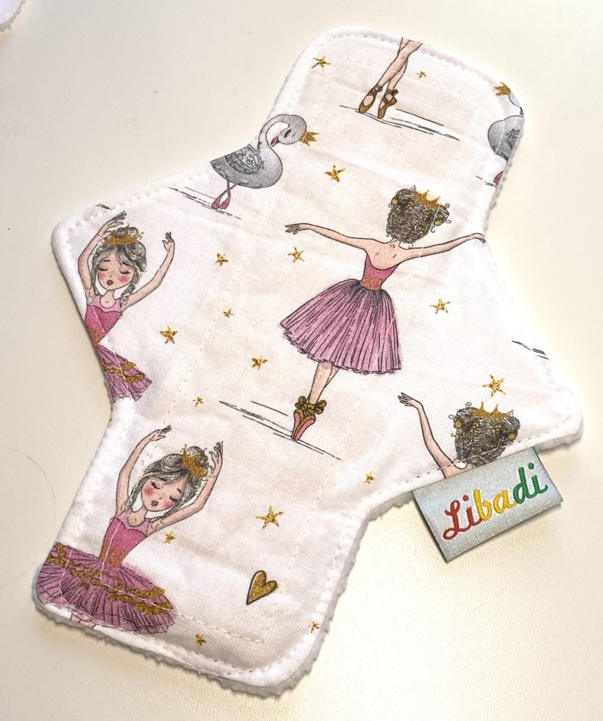 Libadi waschbare Stoffbinde / Slipeinlage. Das Foto zeigt ein Design-Beispiel, die Platzierung der Muster kann individuell abweichen. Wird MIT Druckknöpfen geliefert. (außer Gr. XS mini)