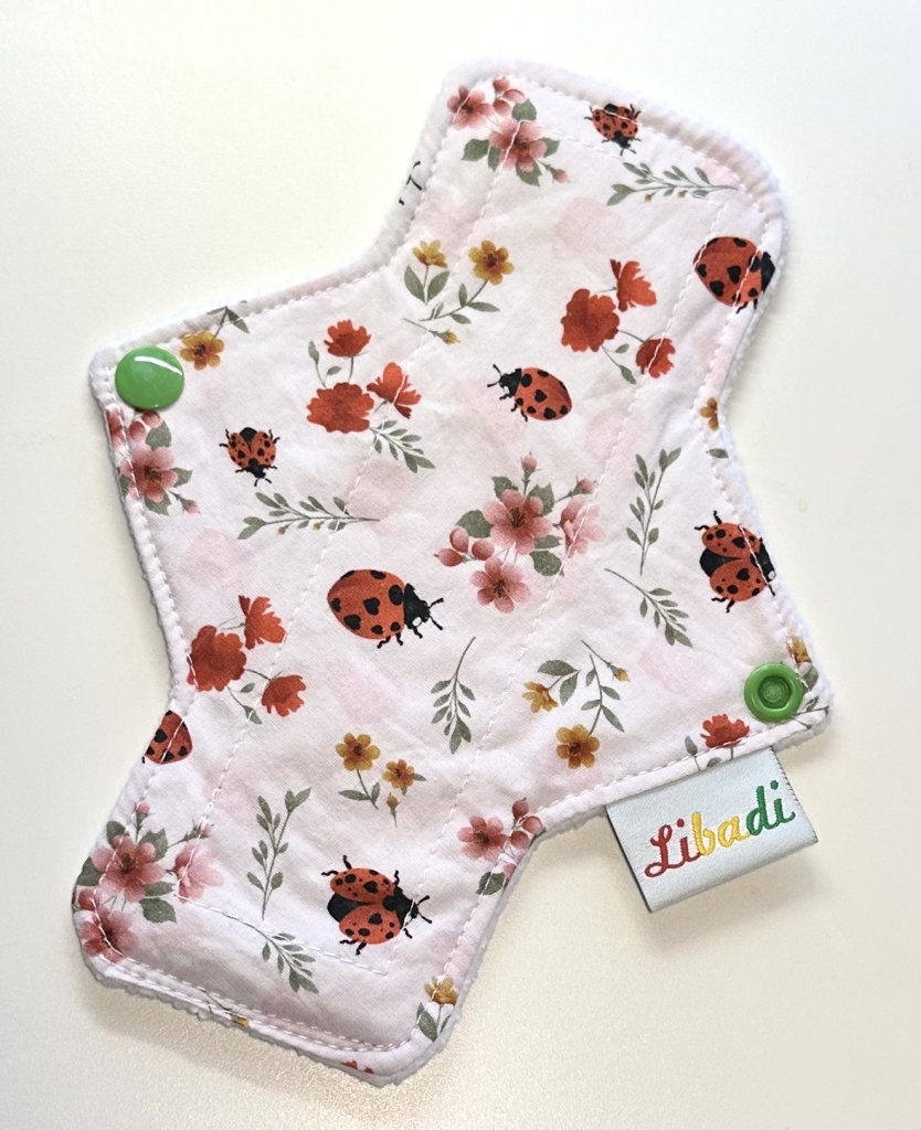 Libadi waschbare Stoffbinde / Slipeinlage. Das Foto zeigt ein Design-Beispiel, die Platzierung der Muster kann individuell abweichen. Wird MIT Druckknöpfen geliefert. (außer Gr. XS mini)